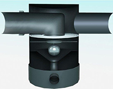 雨水棄流裝置主要應(yīng)用在雨水收集利用系統(tǒng)中。在流經(jīng)初期氣流裝置時(shí),因重力的作用,雨水將首先通過低位敞口的排水污管排放掉。在雨量增大時(shí),打在擋板上的壓力增大,位于排污管上端的浮球在水流壓力的作用下將排污管關(guān)閉,進(jìn)行收集。